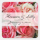 Pegatina Cuadrada Boda personalizado de rosas rosadas