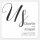 Estos elegantes y románticos stickers de bodas presentan un tema blanco y negro. El título "Nosotros" está impreso en un gran guión en la parte superior, encima de los nombres de la pareja que se casa. La información del boda se imprime a continuación en una fuente sofisticada, moderna y negra.