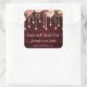Esta pegatina cuadrada de boda coincide perfectamente con nuestro conjunto de boda rústico de madera floral granate. Hará que tus detalles de boda sean aún más adorables. Puedes añadir fácilmente tus nombres y la fecha de tu evento especial haciendo clic en el botón "personalizar". Añadirá bonitos toques finales a tus invitaciones de boda, sobres, detalles y cajas de regalo y más. Por favor, ponte en contacto conmigo si necesitas ayuda o productos coincidentes en shabnamahsanatzazzle@gmail.com.