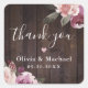 Pegatina Cuadrada Boda rústica floral púrpura mauve de agradecimient