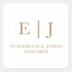 Pegatina Cuadrada Boda simple dorado Monograma Pareja Iniciales