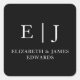 Pegatina Cuadrada Boda simple negro monograma Iniciales de pareja