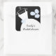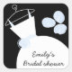 Pegatina Cuadrada Boda vestido azul "ducha de novia" negro cuadrado