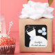 pegatina de temática bonito pastel con bata boda estilizada y flores en tonos azules, negros y blancos. Un diseño de personalizable para que puedas personalizar con tu propio texto, imágenes e ideas.