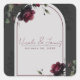 Pegatina Cuadrada Bodas Florales de Rosa Roja Bordeaux Sombra Gris