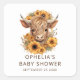 Pegatina Cuadrada Bohemias Highland Cow Sunflowers Baby Shower