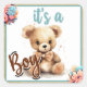 Pegatina Cuadrada Boho Blue Bear Baby Shower