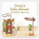 Pegatina Cuadrada Boho Cowboy Bear Western Rodeo Cactus Baby Shower