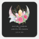 Pegatina Cuadrada Boho Moon Crystals Feathers Pink Flowers Boda
