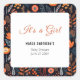 Pegatina Cuadrada BOHO Turquoise Fall Otoño Chica Floral Baby Shower