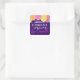 Coloridos ganchos de crochet y bolas de hilo en este pegatina "hecho a mano con amor" o "hecho a mano por", personalizado con su texto y elección de color, perfecto para regalos o presentación artesanal de venta.