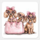 Pegatina Cuadrada Bolsa rosa de los perros Dachshund