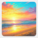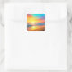 Pegatina Cuadrada Bonita puesta de sol en la playa de arena del océa