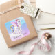 Pegatina Cuadrada Bonita unicornio con barro arco iris y cola