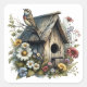 Pegatina Cuadrada Bonito acuarela Rustic Birhouse and Bird