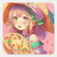 Pegatina Cuadrada Bonito Anime Chica llevando una pizza