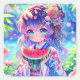Pegatina Cuadrada Bonito Chica come sandía