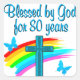PEGATINA CUADRADA BONITO DISEÑO CRISTIANO AZUL 80 CUMPLEAÑOS