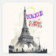 Bonjour Colorful Paris. Pegatinas Cuadradas. Compra los mejores regalos en el Día de la Torre Eiffel 31 de marzo para tus amigos, chicas, chicos, hermanos, hermanas, padres y abuelos. #eiffeltowerday #camisetas