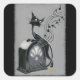 Un gatito de boo espeluznante escucha la música que suena en una radio antigua. Desde el boceto del Desafío de Arte con tinta de octubre de 2020 de Amanda Diehl, Paxdomino Designs.