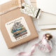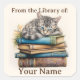 Pegatina Cuadrada Bookplate con gato escondido en los libros