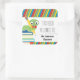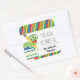 Este pequeño pegatina cuadrado cuenta con una lombriz sosteniendo un lápiz y sentado en una pila de libros. El fondo es un patrón de franja diagonal colorido con una caja blanca en el centro. El texto es personalizable.