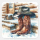 Pegatina Cuadrada Boots de vaquero en la portada delantera en un día