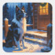 Pegatina Cuadrada Border Collie With Christmas Lights Holiday