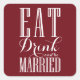 Pegatina Cuadrada Borgoña come, bebe y sé Boda casado