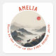Born in Year of the Horse 2026 Chinese New Year Mountain Sunrise Sticker. Celebrate the Year of the Horse 2026 with this sticker featuring a graceful horse standing among misty mountains under a glowing red moon. The soft landscape tones create a peaceful aesthetic. Add your Name.