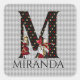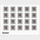 Pegatina temática caprichosa de Wonderland ilustraciones de personajes vintage Alice y la Reina de Corazones con letra / inicial M grande con un patrón de relleno de tarjetas negras / doradas / rojas en un fondo gris vintage de arlequín. Personalice aún más con texto de nombre personalizable