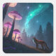 Pegatina Cuadrada Bosque de zorro de fantasía de hongos brillantes a