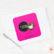 Pegatina Cuadrada Botella de Coquito de Coco Rosa Brillante Intenso