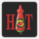 Letras CALIENTES con el O hecho con una botella de salsa de pimienta.