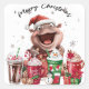 Pegatina Cuadrada botón Hippo Santa Holiday Cheer