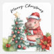 Pegatina Cuadrada botón Hippo Santa Holiday Cheer