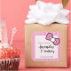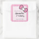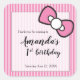 Pegatina Cuadrada Bow rosa, franjas, gracias, primer cumpleaños