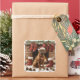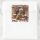 Pegatina Cuadrada Boxeador en Santa Hat por chimenea