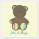 Pegatina Cuadrada Boy Baby Shower Brown Stuffed Bear Boho Dots