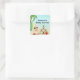 Pegatina Cuadrada Boy Beach Baby Sandcastle en Surfboard Baby Shower