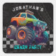 Pegatina Cuadrada Boys Monster Truck Rally Birthday Party