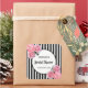 Pegatina Cuadrada Bridal Shower rayas blancas negras flores rosadas