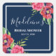 Pegatina Cuadrada Bridal Shower Red and Pink Flowers Dark Navy