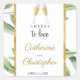 Este diseño de servilleta para fiesta de compromiso Cheers to Love presenta dos copas de champán en un brindis por el amor. Hay un bonito marco dorado con acentos botánicos modernos verdes que rodean el texto en la parte frontal de esta etiqueta de favor de fiesta de compromiso moderna y elegante. Personalice este accesorio de boda con sus nombres y la fecha de su evento.
