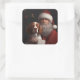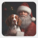 Pegatina Cuadrada Brittany Spaniel con Navidades de Santa Claus
