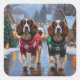 Pegatina Cuadrada Brittany Spaniel Dogs Christmas Snow Holiday