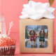 This festive design captures the joyful spirit of the holiday season, featuring an adorable dogs.Nestled in a winter wonderland, complete with a decorated Christmas tree, and beautifully wrapped presents. Snowflakes gently fall, adding a magical touch to the scene, while the vibrant colors of the holiday decorations create a warm and cheerful atmosphere.