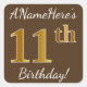 Pegatina Cuadrada Brown, Faux Gold 11th Birthday + Custom Name
