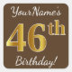 Pegatina Cuadrada Brown, Faux Gold 46th Birthday + Custom Name