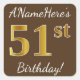 Pegatina Cuadrada Brown, Faux Gold 51st Birthday + Nombre personaliz